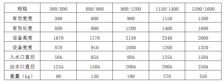 3. 筛网开孔率大,间隙从0.3mm到3.0mm;当筛间距增大时,处理水量相对增加;